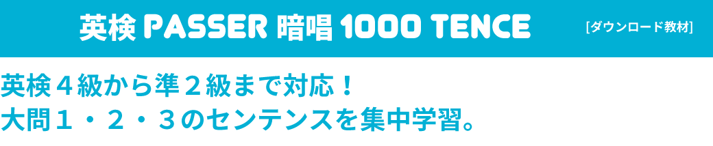英検では、「似たような」文章が毎回くり返し出題されたり、場合によっては、「全く同じ」文章が出題されたりすることもあります。『英検Passer 暗唱1000tence』には、英検4級、3級、準2級の、過去5年間の設問1・2・3の文章をカテゴリー分けして収録しました。暗唱を通して、単語や出題文のパターンもまるごと吸収してしまえば、スコアアップは間違いなしです! 英検Passer 暗唱1000tence 教材仕様 テキスト[PDF形式/25P] 音声[MP3形式/94ファイル]