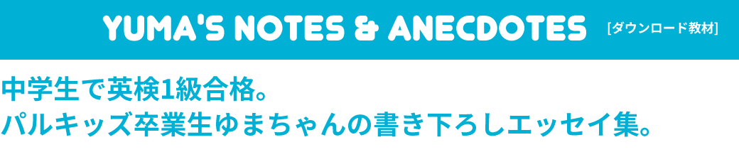 なんと中1で英検1級に合格!パルキッズで見事にバイリンガルに育ったゆまちゃんがパルキッズホームページで毎月連載をしていたオリジナルエッセイです。