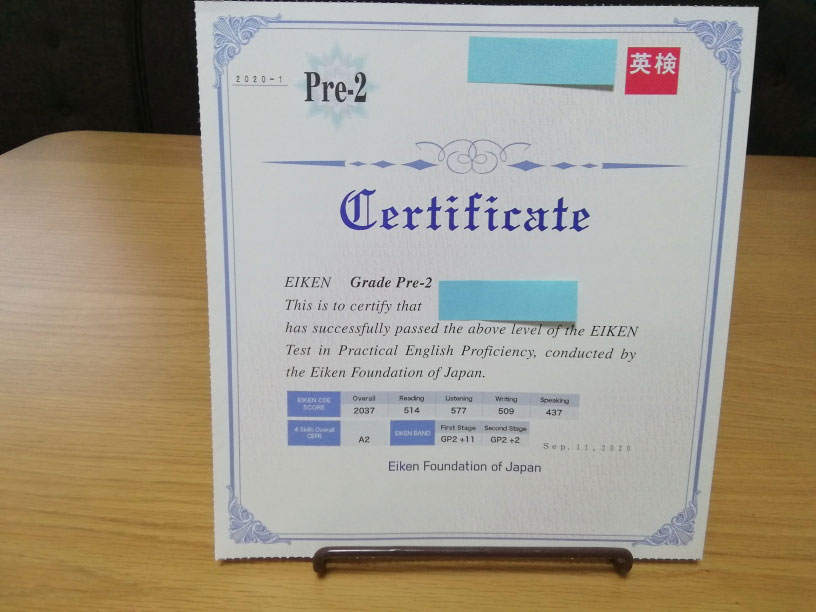 3級受験時と同様に、対策をしたのはライティングのみで、リーディングとリスニングについては過去問を解かせただけで本番に臨みましたが、一次試験の結果は予想以上の高得点でした。