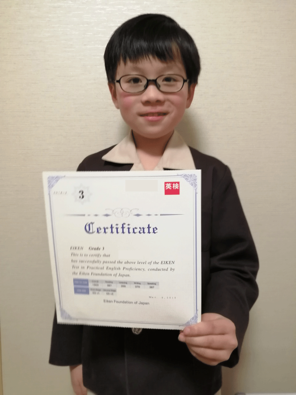 このたび、小2(8歳)息子が英検3級に合格しましたので、ご報告させて頂きます。