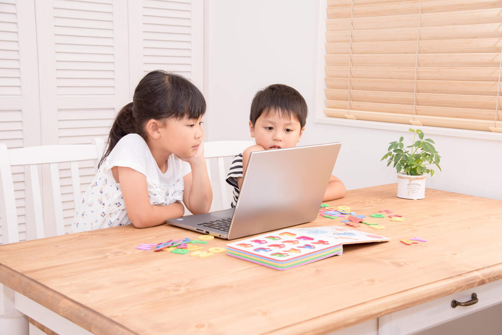 解決策としては、ただスマートフォンやPCを子どもから遠ざけるのではなく、使用するにあたってのルールをしっかりと定めることです。まず、幼児、小学生には自分の端末は必要ありません。親の端末を使わせます。さらに、この端末はオンラインレッスン用、英書読書用など、使用目的を限定します。しかし、親の端末を使うだけでは子どもは面白くありません。少しでも自分のものという楽しみを持たせてあげましょう(特に兄弟で同じ端末を共有する場合には必要です)。そこで自分だけの入力インターフェイスなどを用意してあげるということです。