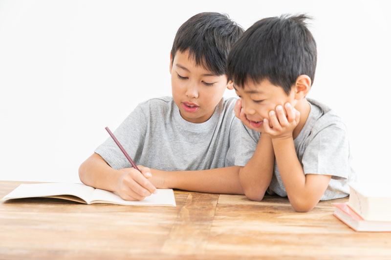 上の子と下の子の年齢差、男の子、女の子で環境が異なりますので、一概に上の方法ができるわけではないと思いますが、上の子に下の子の勉強の面倒を見させる、つまり親代わりをさせるというのは上の子下の子両方にとって、さらに言うと親御さんにとっても良い、一石三鳥の体制になるのです。できそうなご環境であればぜひお試しください。