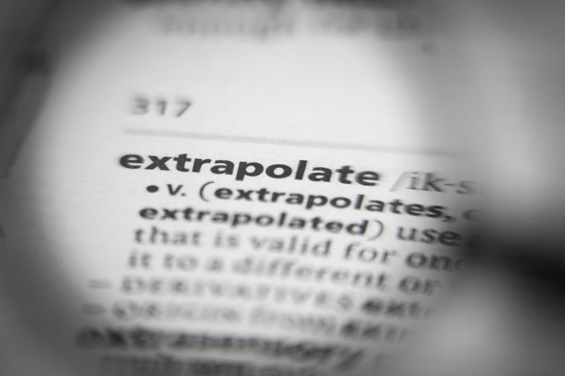 extrapolate : … to extend, or expand (known data or experience) into an area not known or experienced so as to arrive at a usually conjectural knowledge… (Merriam-Webster)