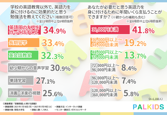 児童英語研究所では、2021年1月・3月の2回にわたり、「大学生の英語学習に関わる意識調査」と「子育て世代の英語教育に関する意識調査」を実施いたしました。