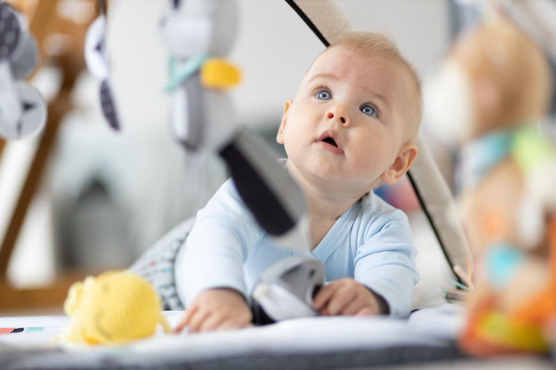 赤ちゃんは耳にした音を口の中で再現しています。最初は「ぱ・ば・ま」でしょうね。生後半年もすればこれら3つの音を難なく産出できるようになります。