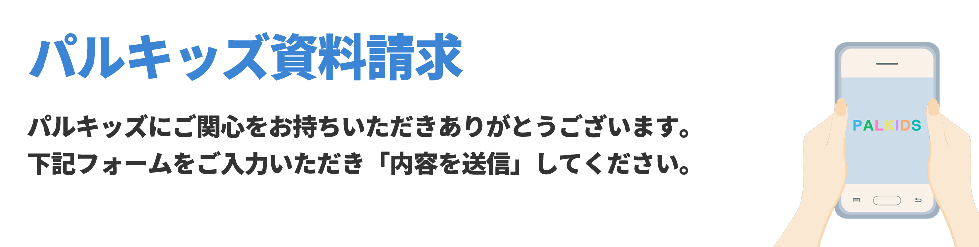 ※すでにパルキッズ会員の方、以前に資料請求をされたことのある方は、 お問い合せフォーム またはフリーダイヤルにてご請求下さい。 *=必須項目です。